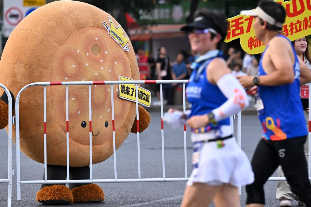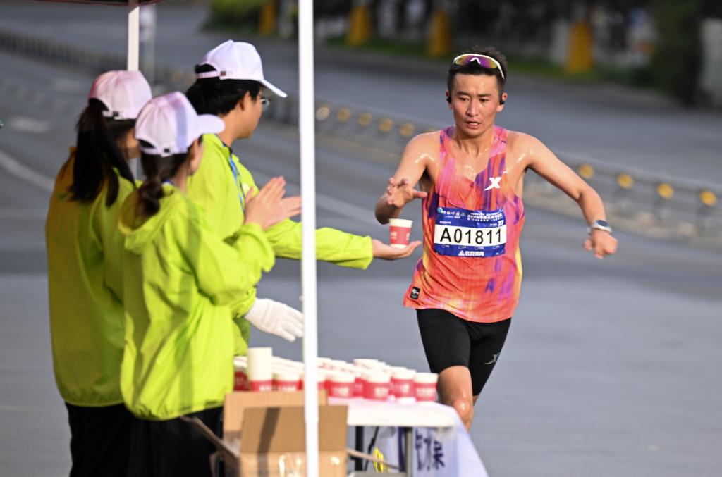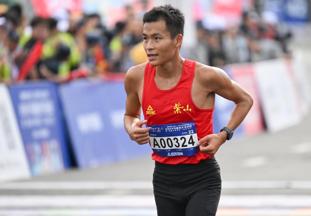 8月31日,中国选手李政跃在比赛中。最终,他以2小时19分54秒的成绩获得男子全程马拉松冠军。