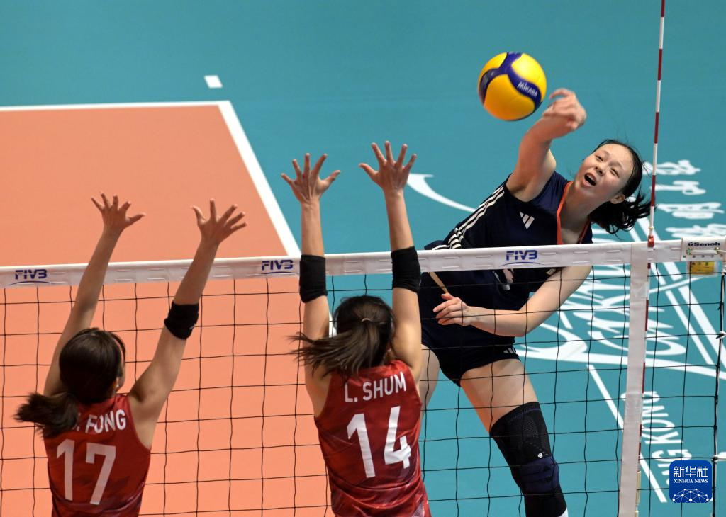 当日,在香港伊利沙伯体育馆举行的2025亚洲东区女子排球锦标赛半决赛中,中国队3比0战胜中国香港队,晋级决赛。