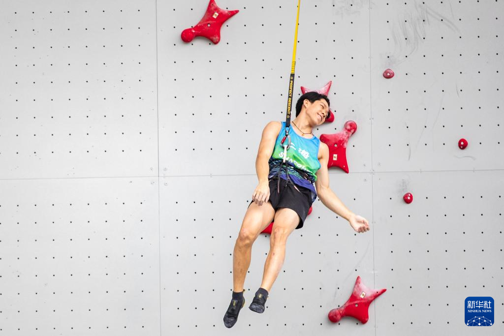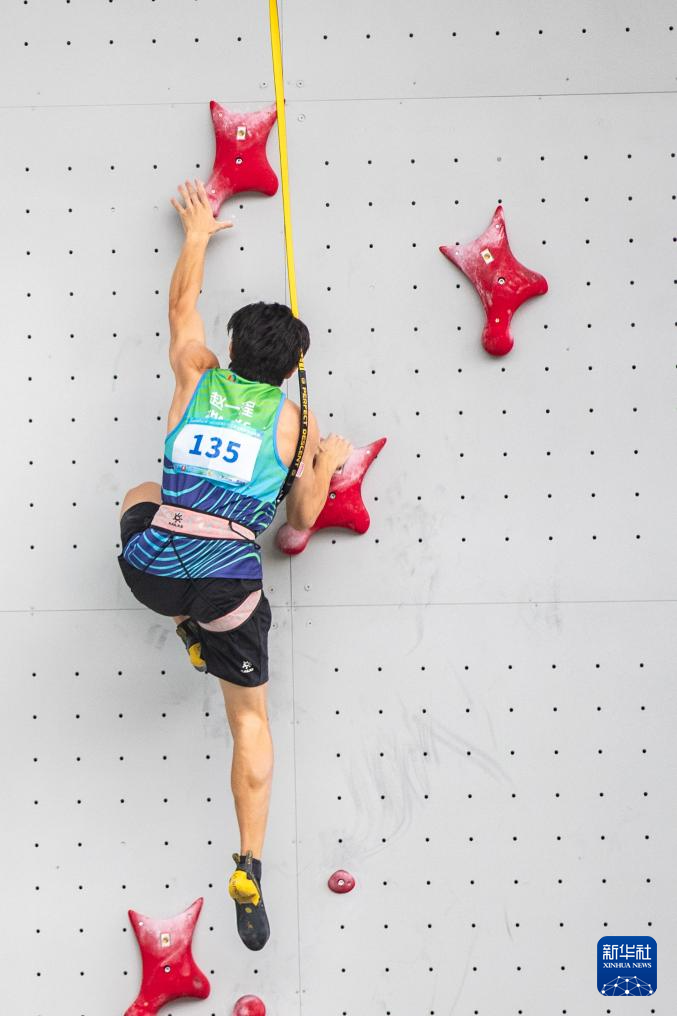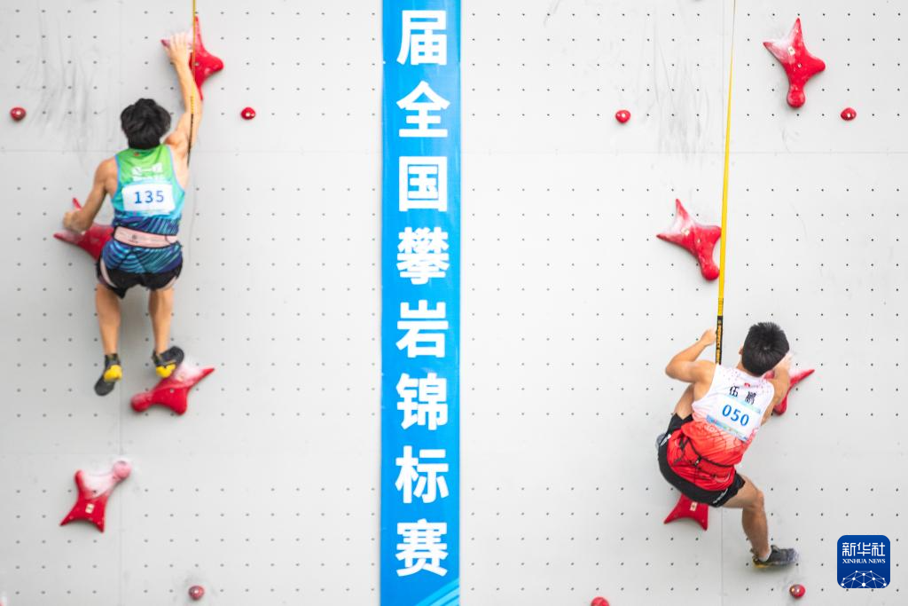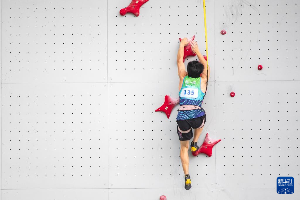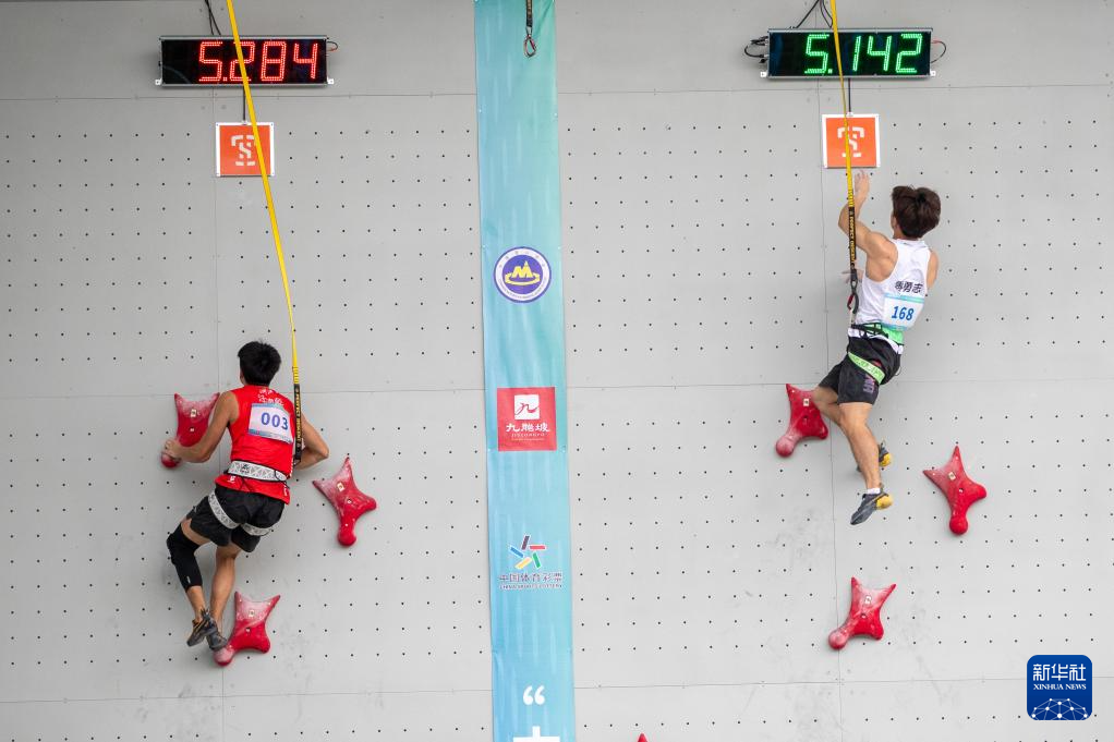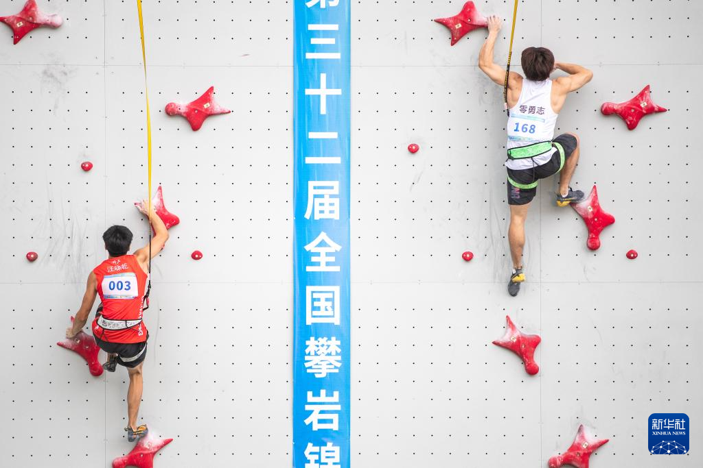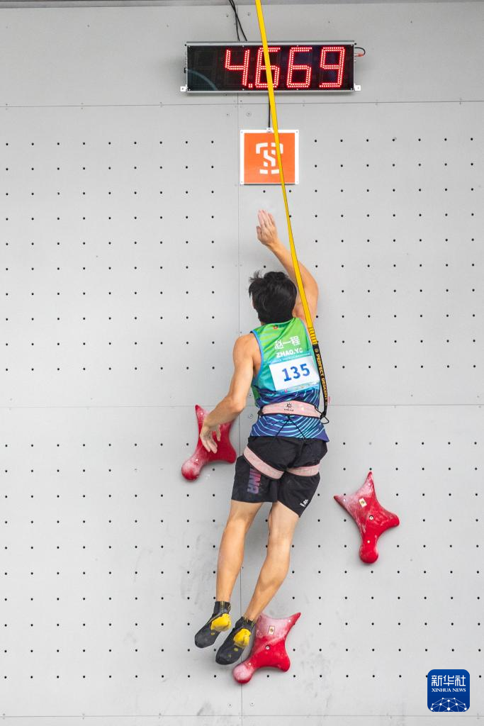 当日,第32届全国攀岩锦标赛男子速度决赛在重庆举行。