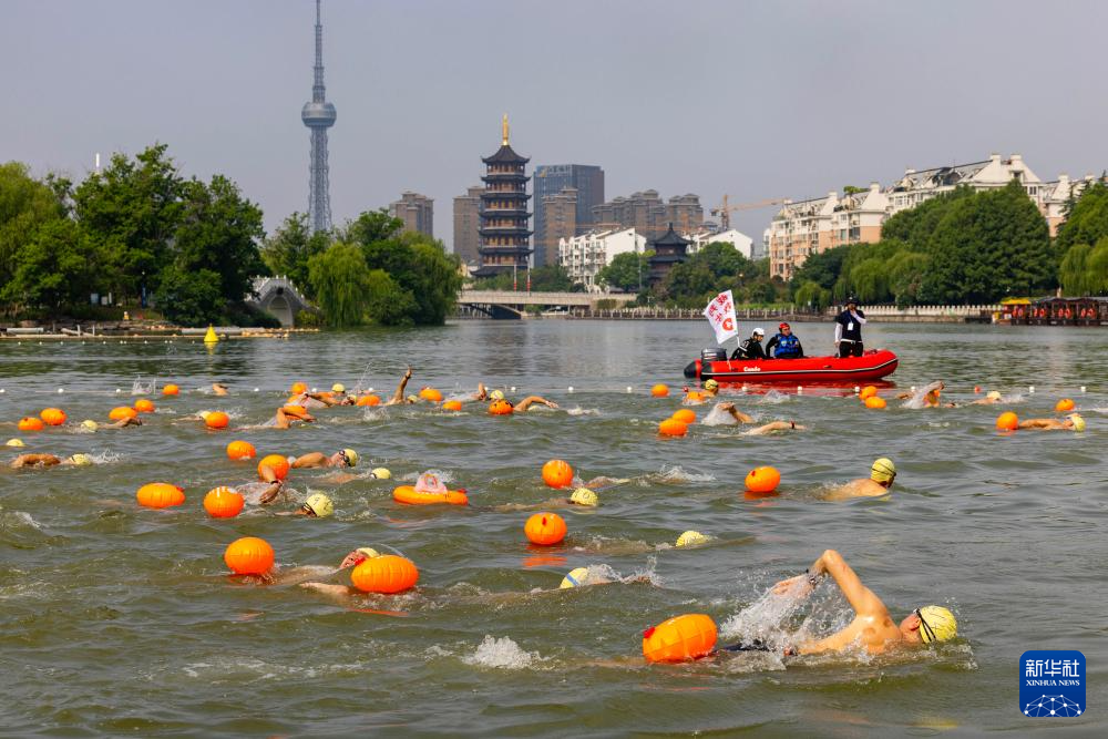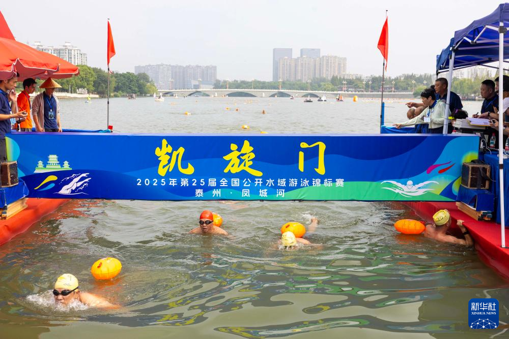 当日,2025年第25届全国公开水域游泳锦标赛在江苏省泰州市海陵区凤城河水域开赛。