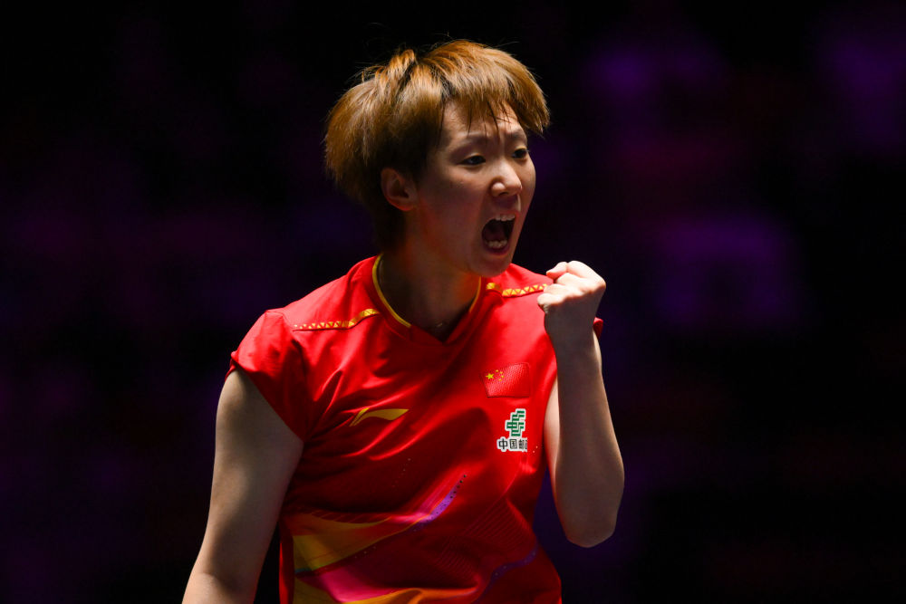 9月12日,孙颖莎在比赛中回球。新华社发(张金加摄)