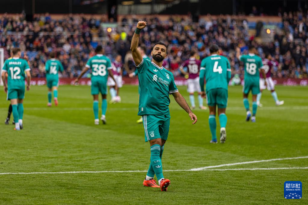 9月14日,利物浦队球员萨拉赫(前)主罚点球命中后庆祝。