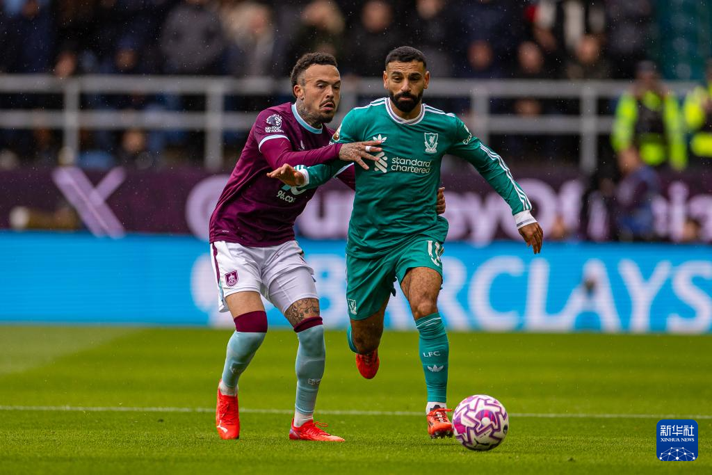 9月14日,利物浦队球员萨拉赫(右)与伯恩利队球员拼抢。