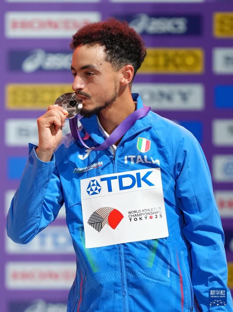 9月15日,季军意大利选手奥瓦尼在颁奖仪式上。