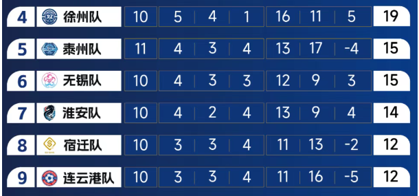 排名第四的徐州队已经领先第九名7分