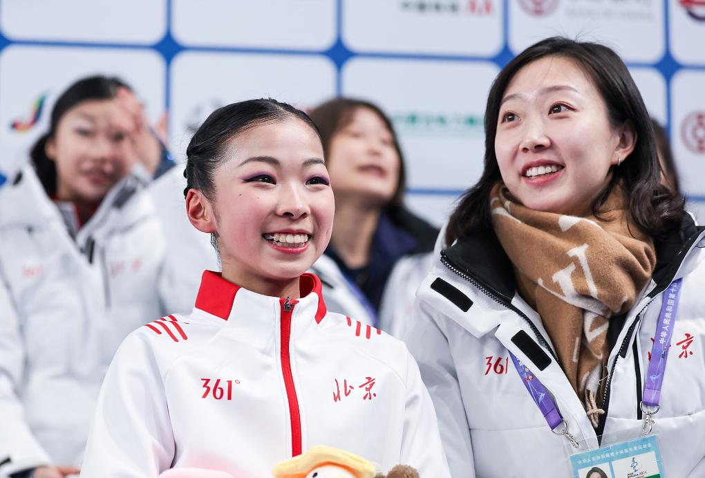 付彩姝对张瑞阳寄予厚望,“她是一个特别上进、特别要强的孩子,训练非常自觉,跳跃的成功率逐渐提高。她现在和男单一组训练,这对她帮助特别大。她的潜力非常大,比赛中虽然有压力,但她能稳住心态。”