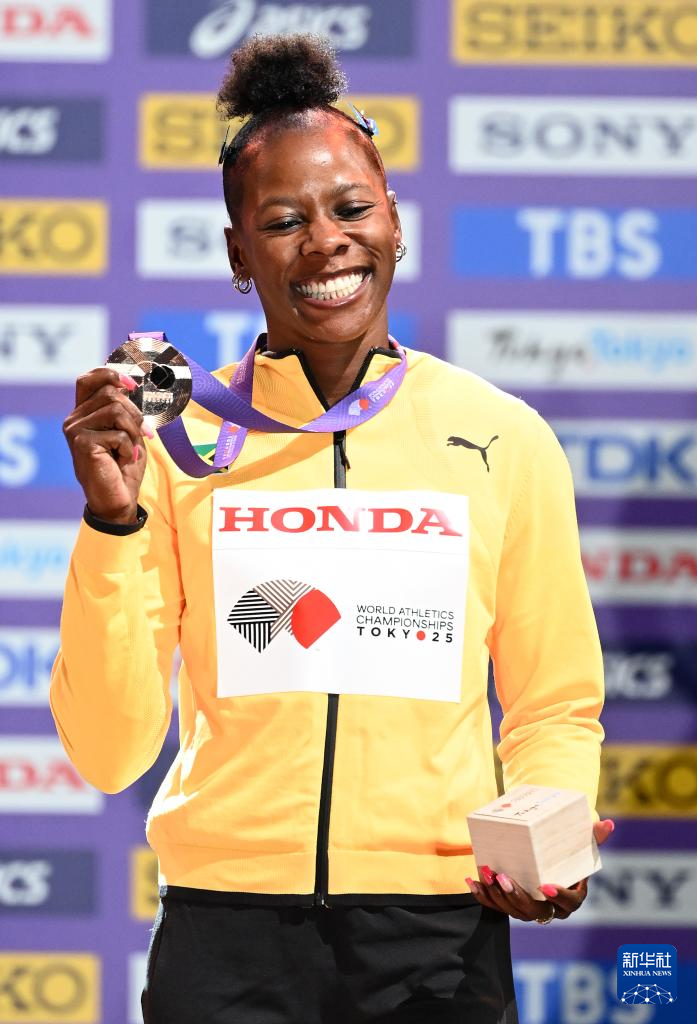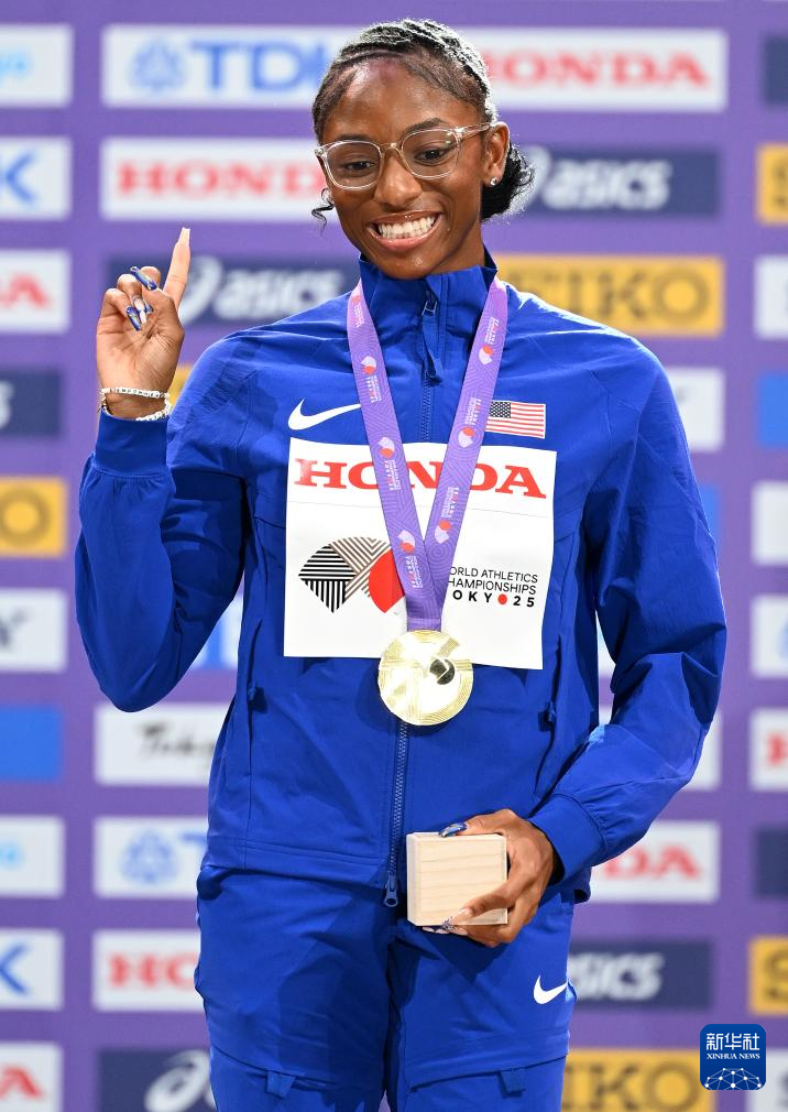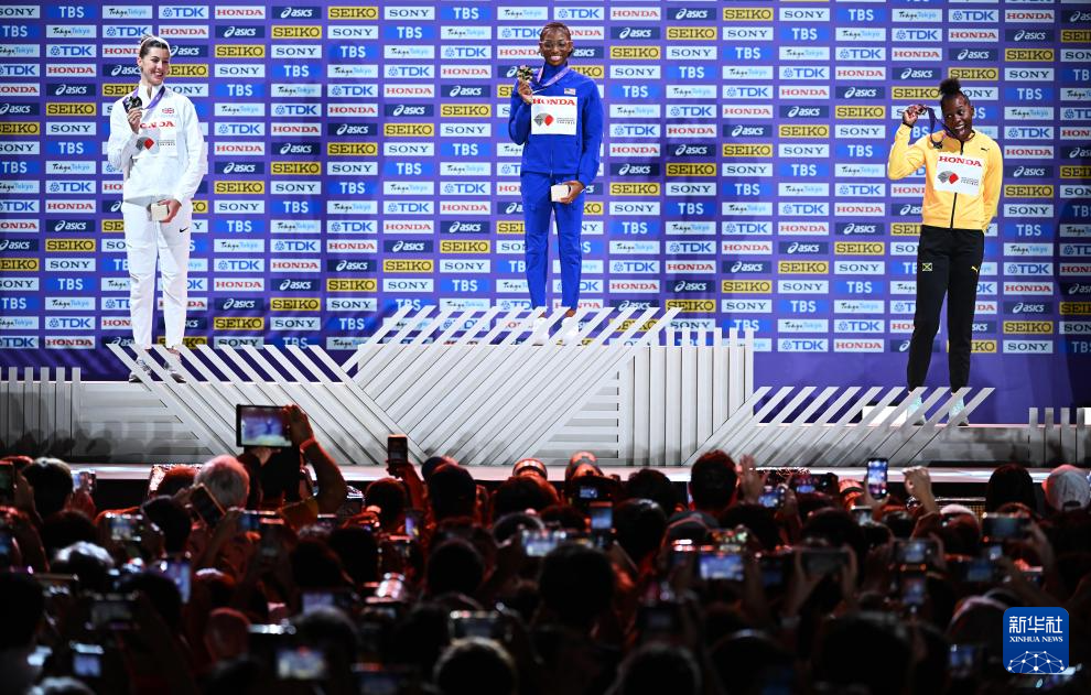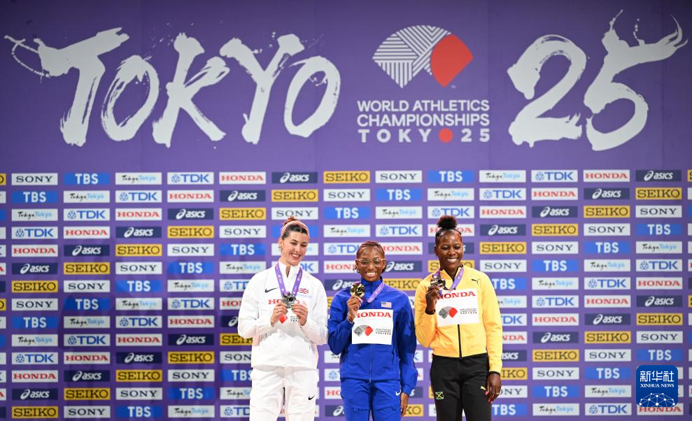 当日,2025年世界田径锦标赛女子200米颁奖仪式在日本东京举行。