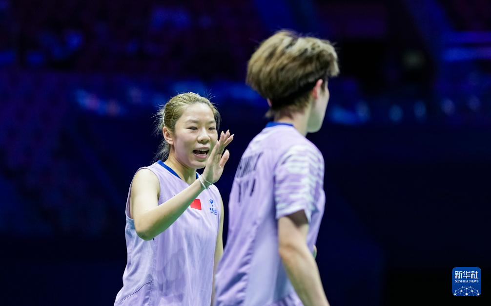 9月20日,贾一凡(左)/张殊贤在比赛中庆祝得分。