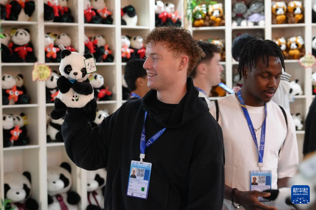 9月23日,一名球员在大连森林动物园选购大熊猫玩偶。