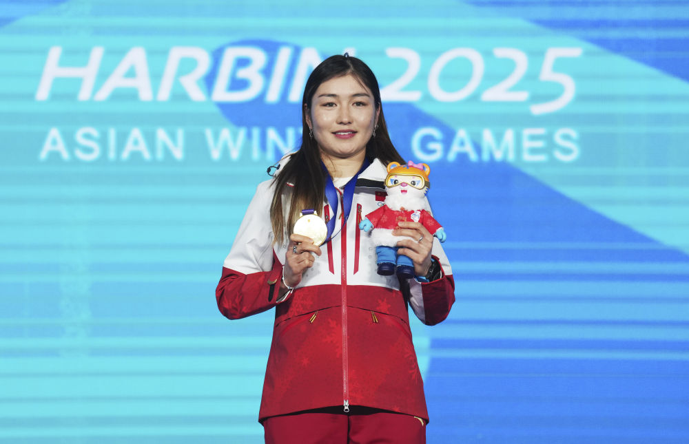 2月9日,巴亚尼·加林在第九届亚冬会颁奖仪式上。新华社记者 王松 摄
