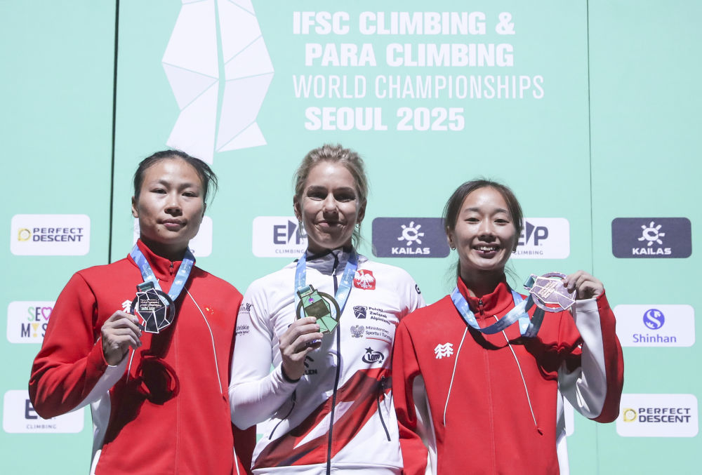 新华社首尔9月24日电(记者张粲、孙一然)在首尔举行的2025年攀岩世锦赛24日见证世界纪录诞生。奥运冠军、波兰选手米罗斯瓦夫以6秒03的成绩在女子速度攀岩项目中夺冠,并将她自己在巴黎奥运会上创造的该项目世界纪录提高了0.03秒。中国队选手邓丽娟和周娅菲分获银牌和铜牌。