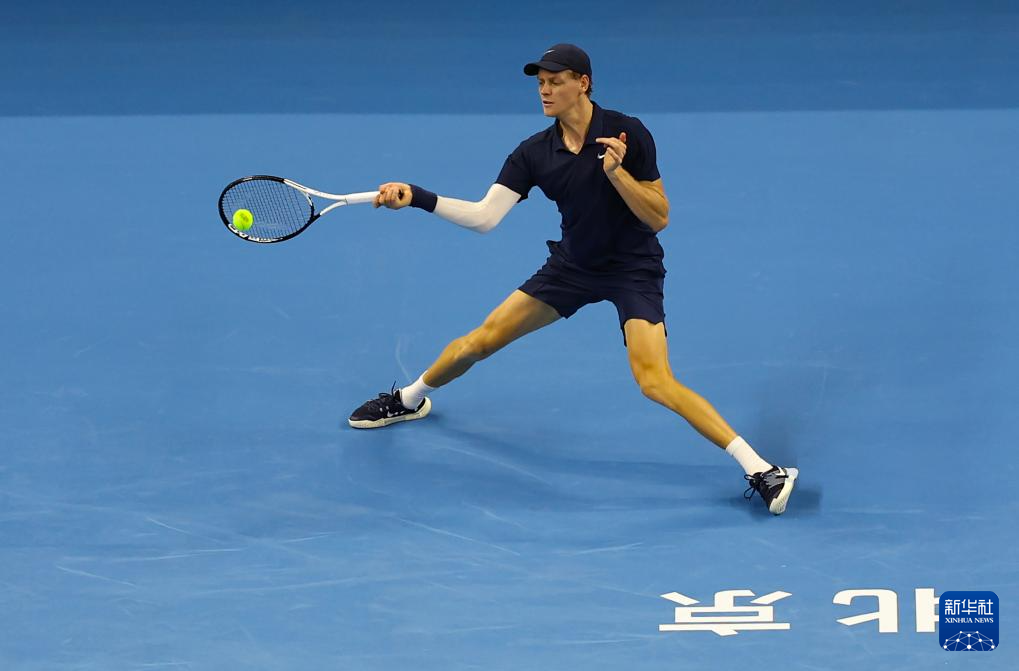 9月25日,辛纳在比赛中回球。