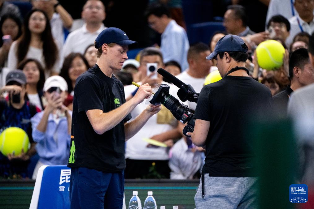 9月25日,辛纳(左)在比赛后签名。