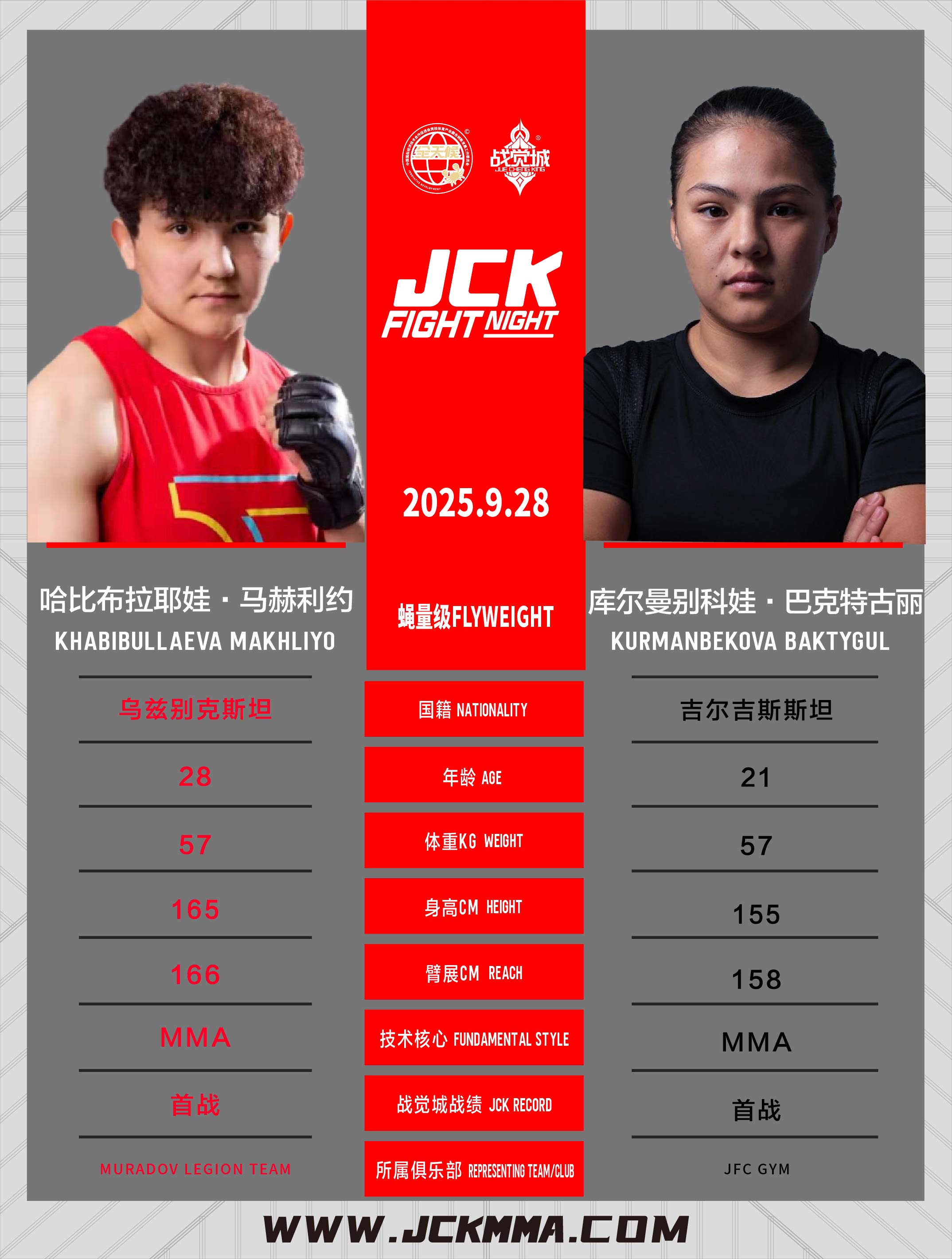 本周双赛!2025年9月28日,JCK觉城之夜N106将拉开羽量级赏金赛1/4决赛的序幕,具体阵容为:王纪征VS斯依木克·托合达洪、那尔太·克孜巴依VS吕凯、拉姆赞·阿赫马托夫VS腾力格、胡布兰·吐尔逊别克VS阿平史拉。