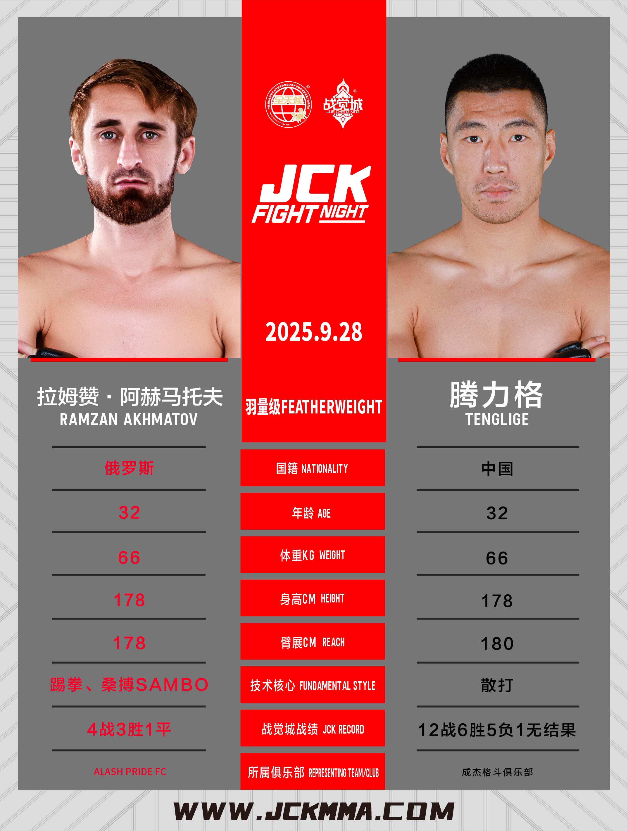 拉姆赞·阿赫马托夫,JCK战觉城羽量级官方排名第二,在JCK战觉城4战3胜1平。