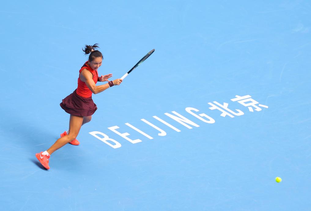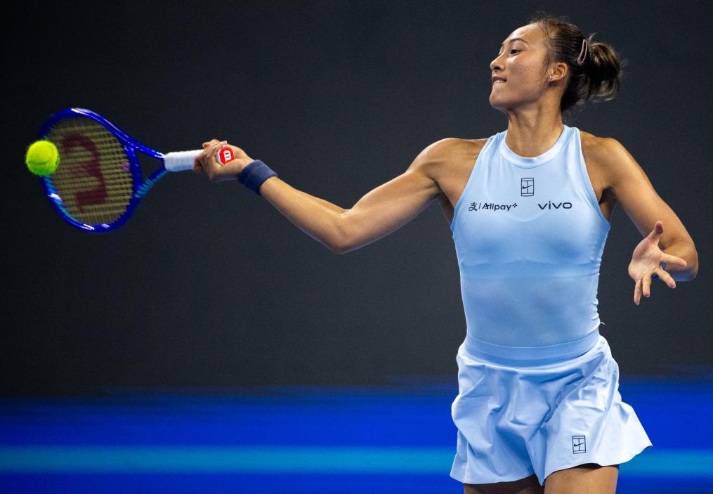 9月27日,郑钦文在比赛中。新华社记者 胡竞文 摄
