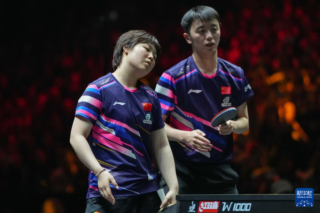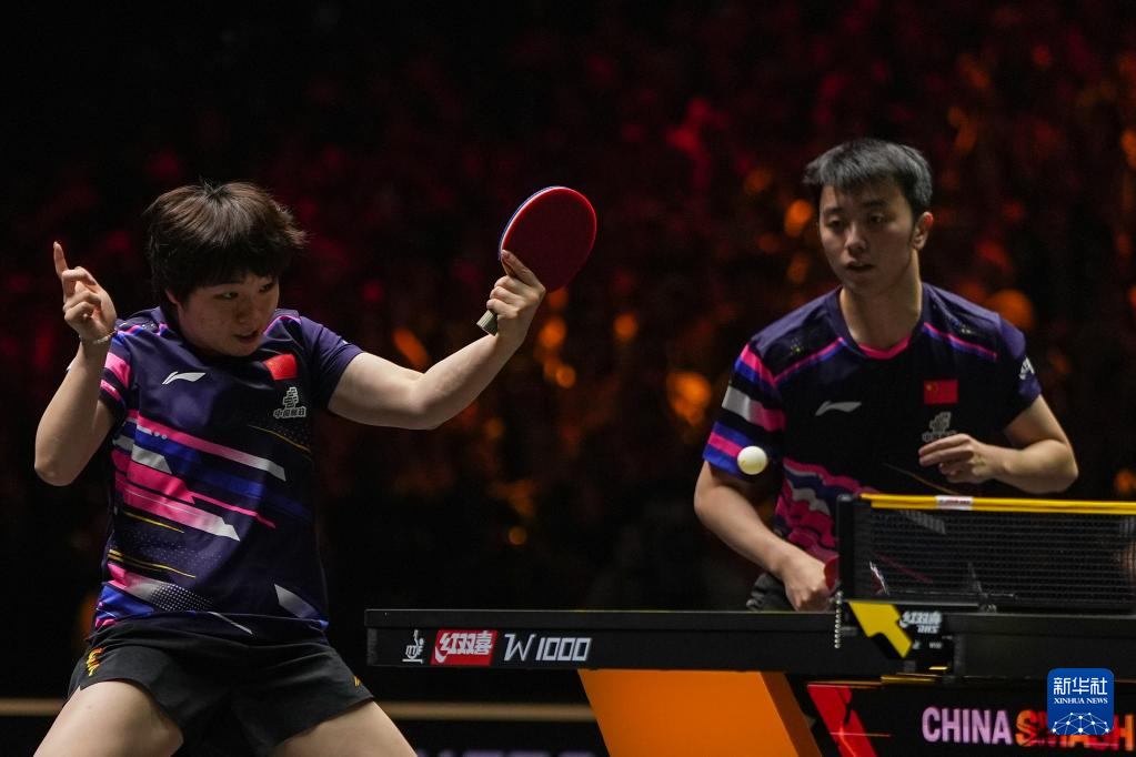 10月1日,中国组合王楚钦/孙颖莎(右)在比赛中。