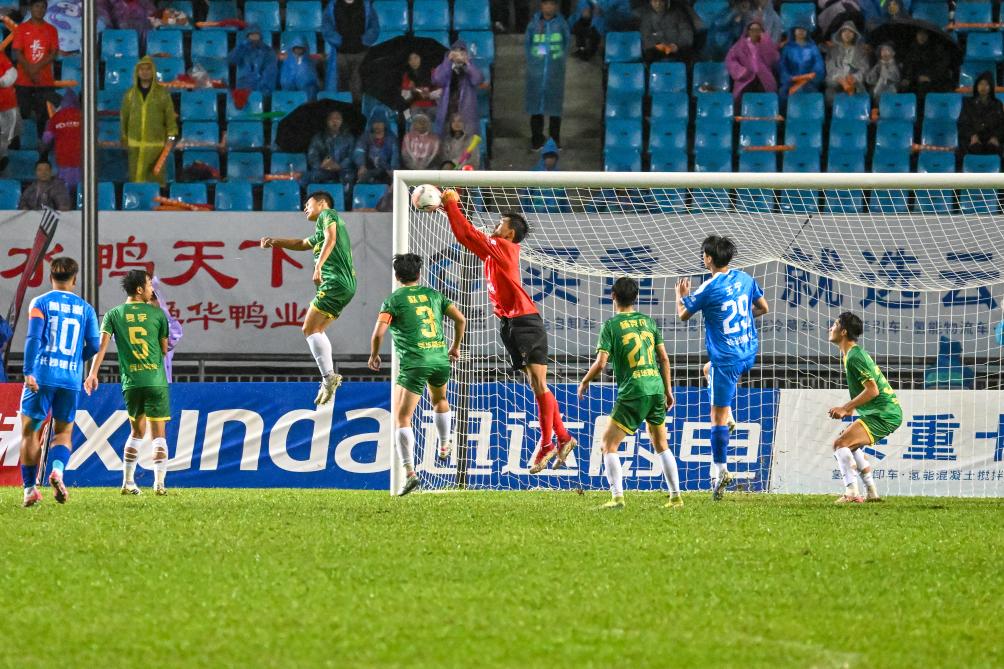 新华社长沙10月2日电(记者谭畅)9月26日晚,2025湖南省足球联赛“湘西北德比”临近终场。主队常德队球门前站着40岁的“鱼贩子”杨立明,张家界队则由17岁中学生熊登高把门。挤满14586名观众的看台上,常德球迷为处于下风的张家界队鼓劲。终场哨响,九旬退休体育老师覃开振喜笑颜开,手拿球迷服离场。