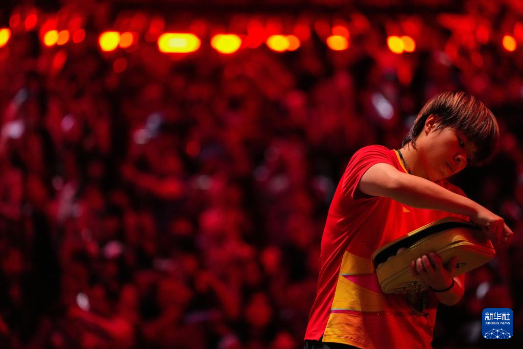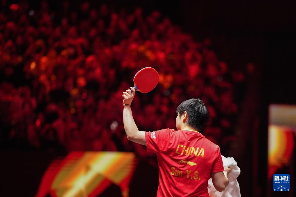 10月3日,孙颖莎在比赛结束后向观众致意。