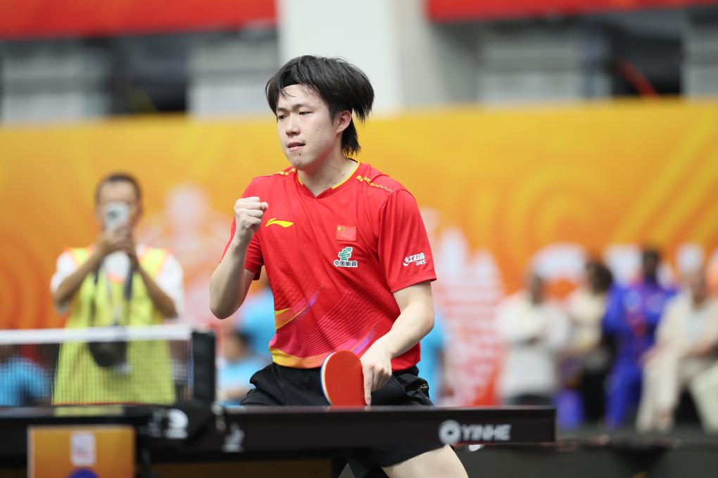 男团决赛,国乒男队对阵中国香港男队。首盘,林诗栋对阵老将黄镇廷,“小石头”仅用时15分钟就以11:8、11:4、11:4速胜对手,为中国男队拿到第一分。