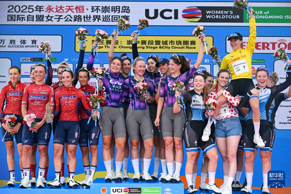当日,2025年环崇明岛国际自盟女子公路世界巡回赛第三赛段(崇中赛段暨城市绕圈赛)在上海市崇明区举行。