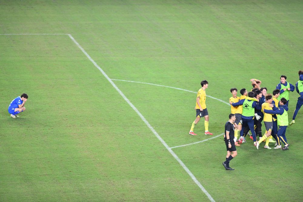 老将压阵的南京队率先打破僵局,第16分钟,冯伯元头球摆渡,滕帅打进个人赛季第九个进球,南京队1:0领先。年龄代表着经验,但同时也造成体能短板,更年轻的泰州队在下半场逐渐占据场上主动,并在第71分钟通过角球机会,由王振宇扳平比分。1:1的比分保持到终场,根据赛制双方直接进入点球大战。