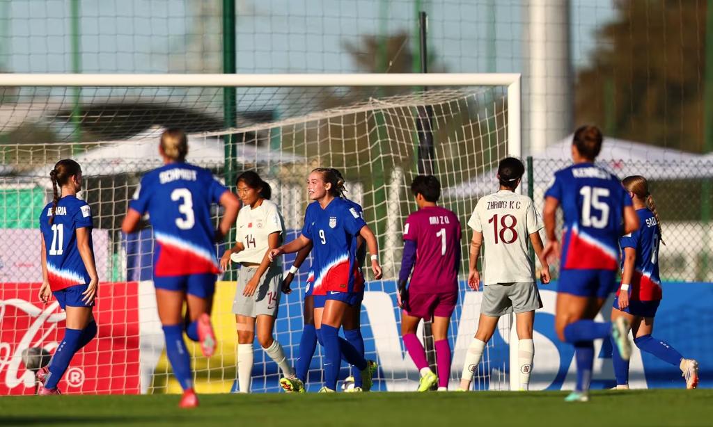 易边再战,图雷和马尔索姆分别在第62分钟和第68分钟各进一球,美国队进一步扩大领先优势。第85分钟,曾屹婕禁区前任意球直接得分扳回一球,但中国队此后未能进一步缩小分差。