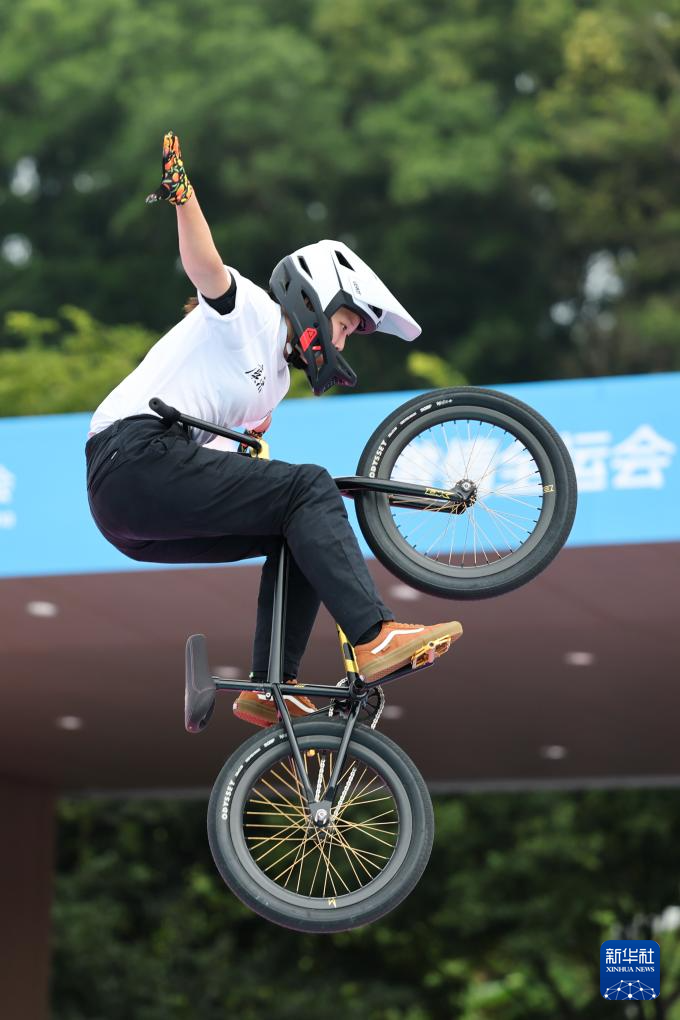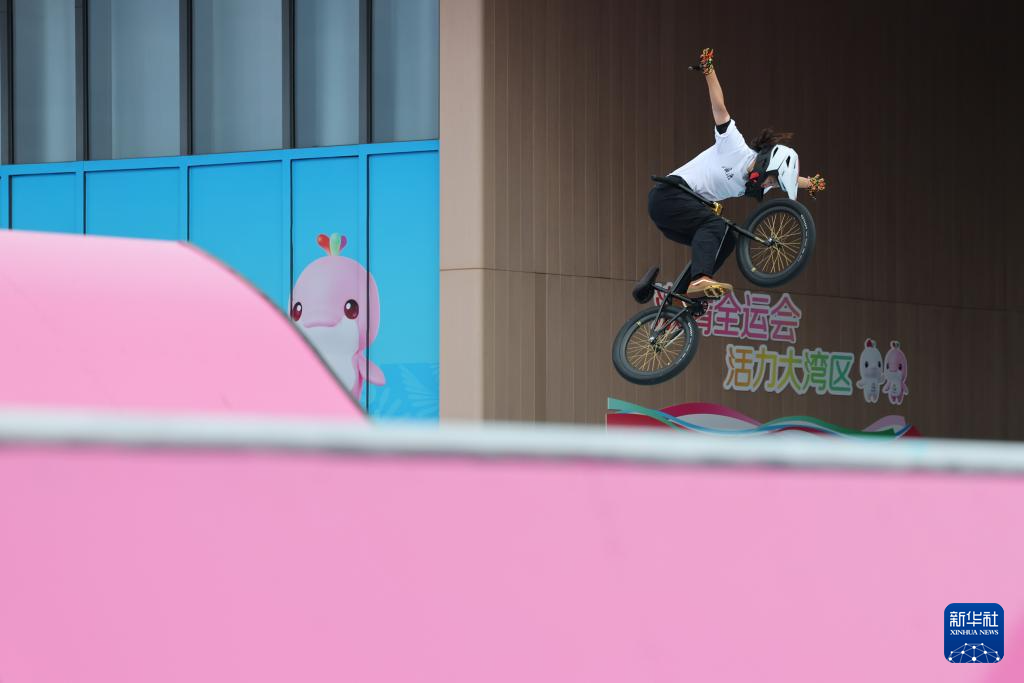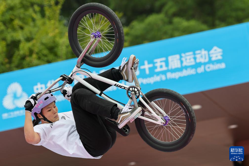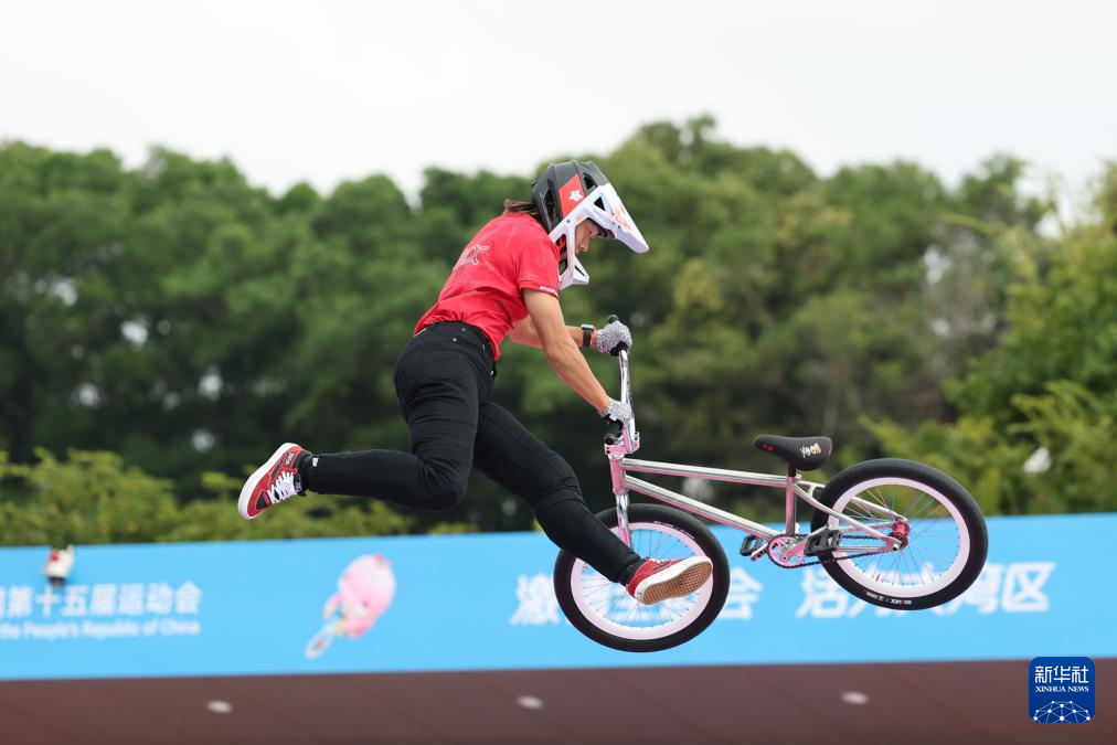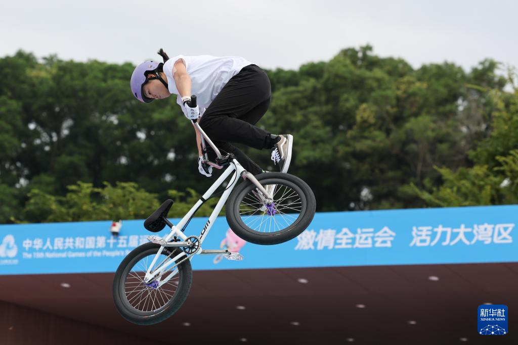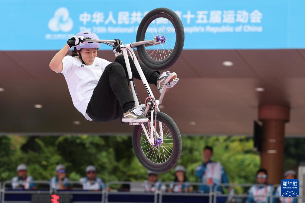 当日,第十五届全国运动会自由式小轮车女子公园赛决赛在深圳光明区虹桥公园举行。