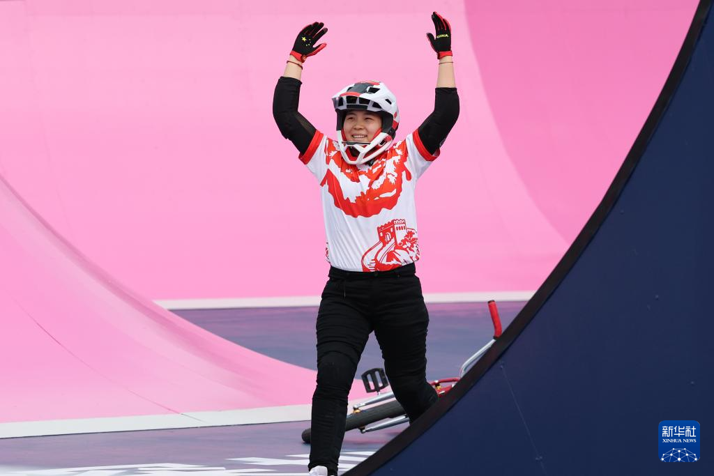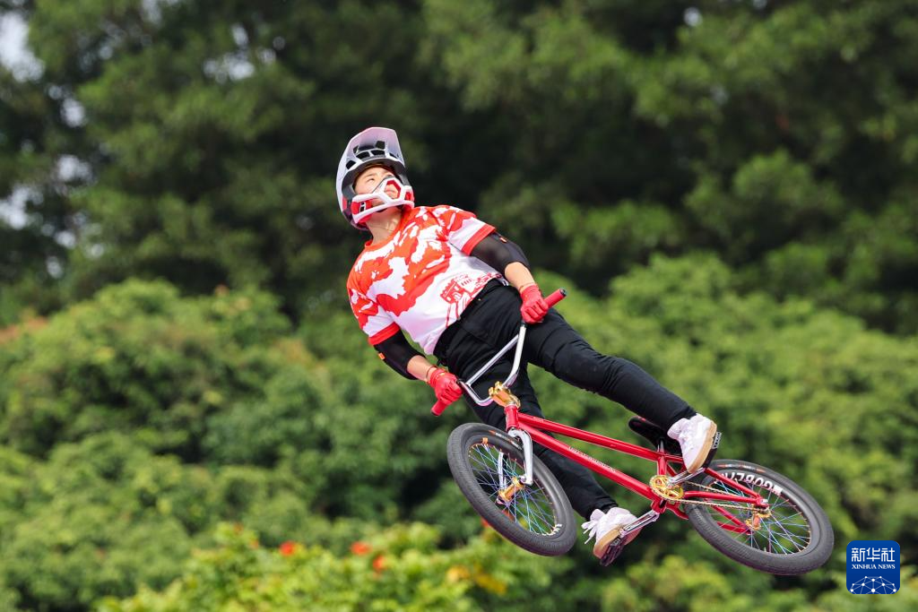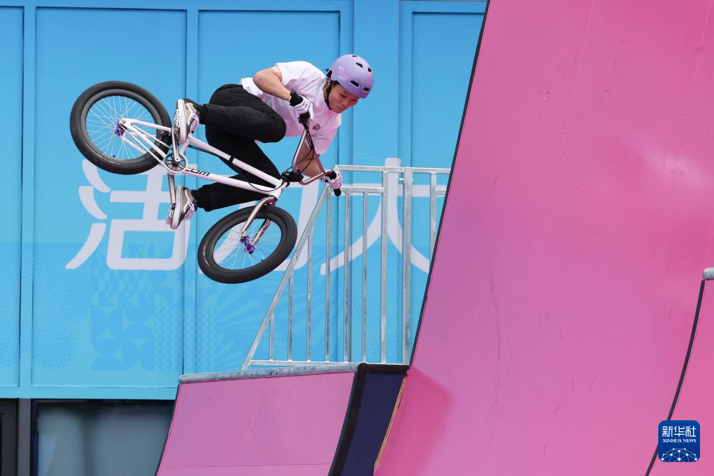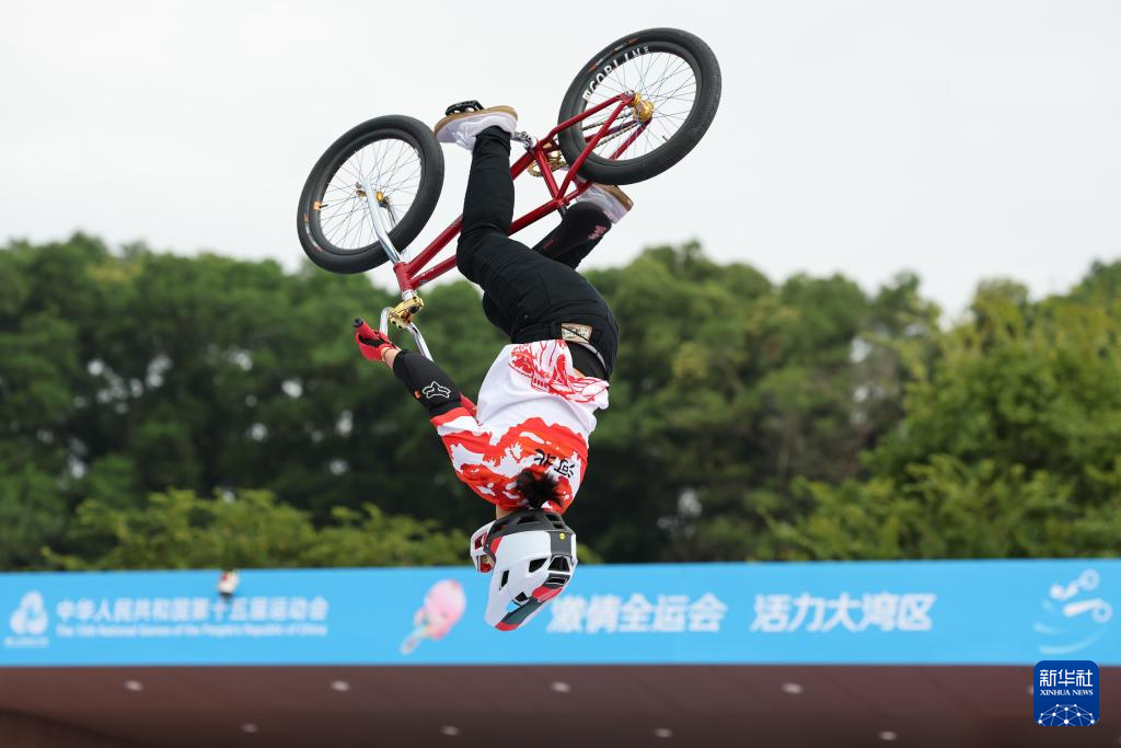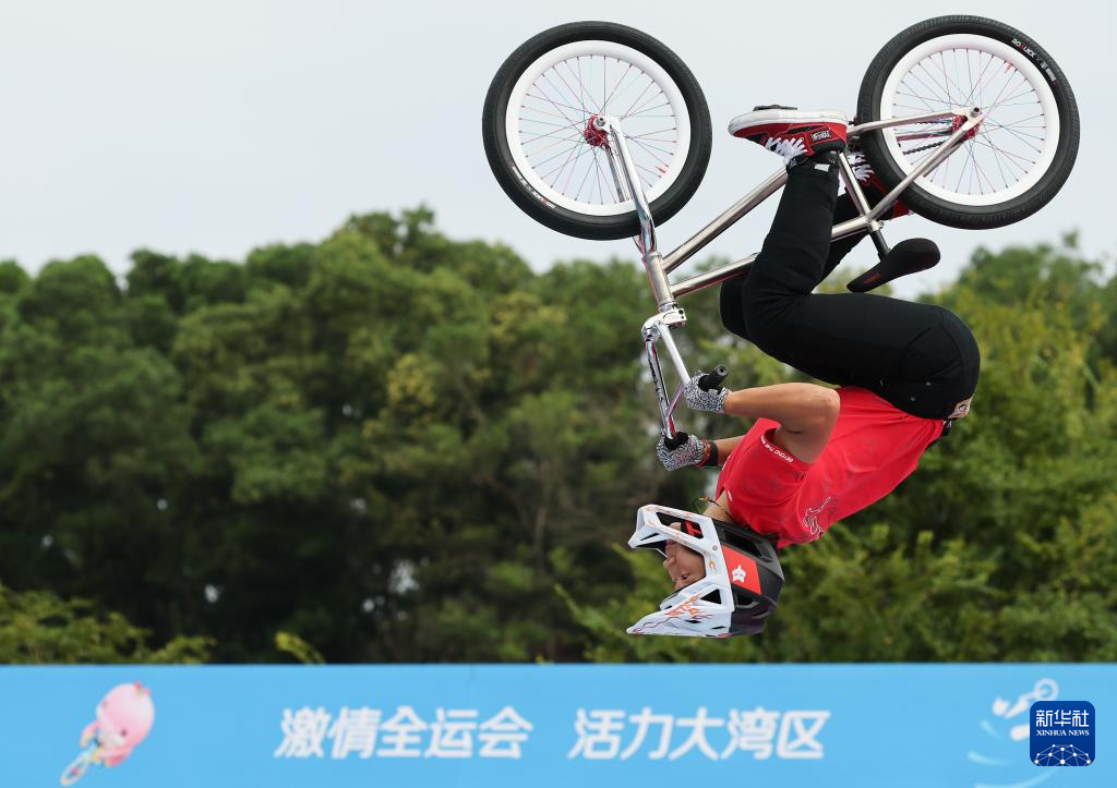 当日,第十五届全国运动会自由式小轮车女子公园赛决赛在深圳光明区虹桥公园举行。