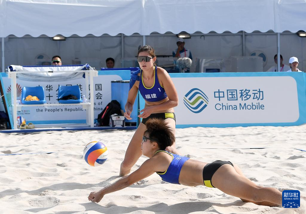 当日,第十五届全国运动会沙滩排球比赛在香港维多利亚公园开赛。