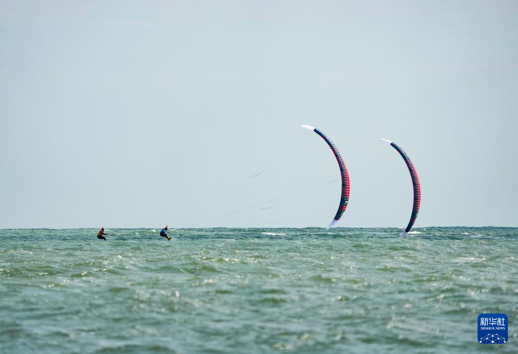 10月30日,上海队选手李婉(左)和广东队选手王思在女子水翼风筝板级比赛中。最终,李婉获得冠军,王思获得亚军。