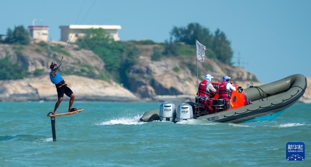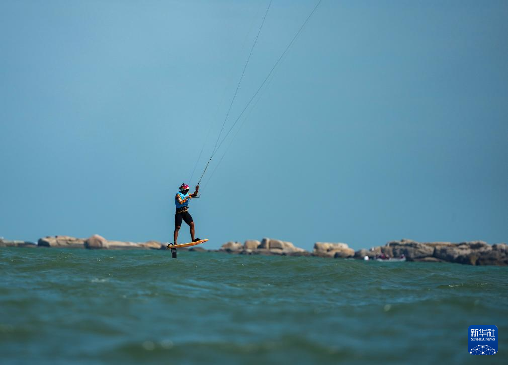 10月30日,山东队选手张浩然在男子水翼风筝板级比赛中。最终,他获得亚军。