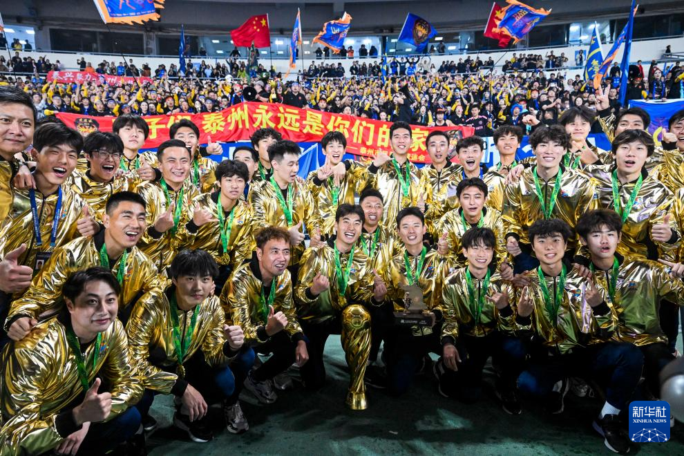 11月1日,泰州队球迷庆祝球队夺冠。