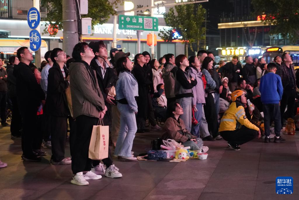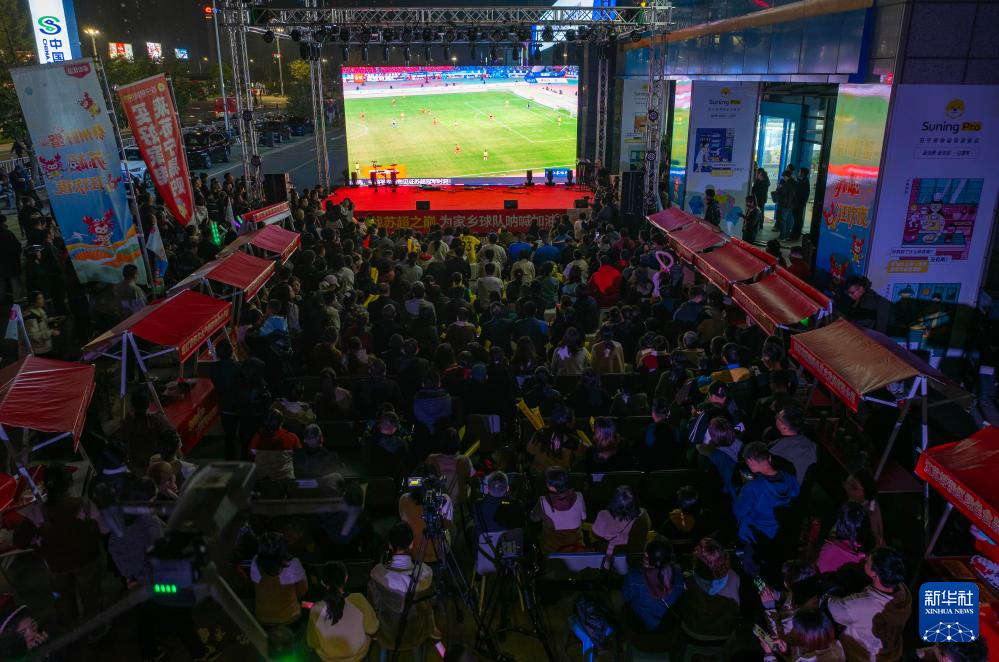 11月1日,在南京金鹰国际购物中心门前广场上,市民在观看“苏超”决赛转播。