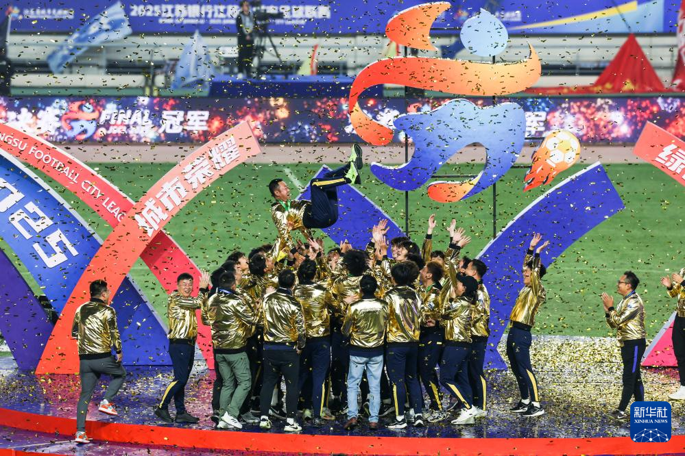 11月1日,在江苏南京举行的2025江苏省城市足球联赛(“苏超”)决赛中,南通队与泰州队在常规时间0比0战平,通过点球大战,泰州队总比分4比3战胜南通队,夺得冠军。