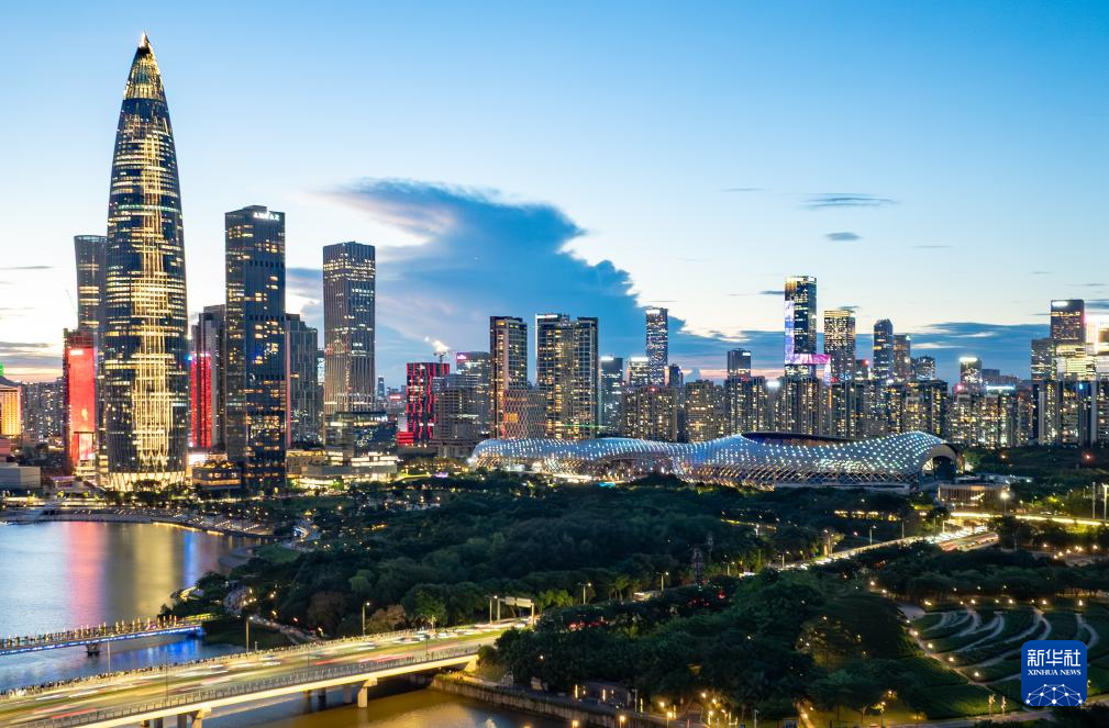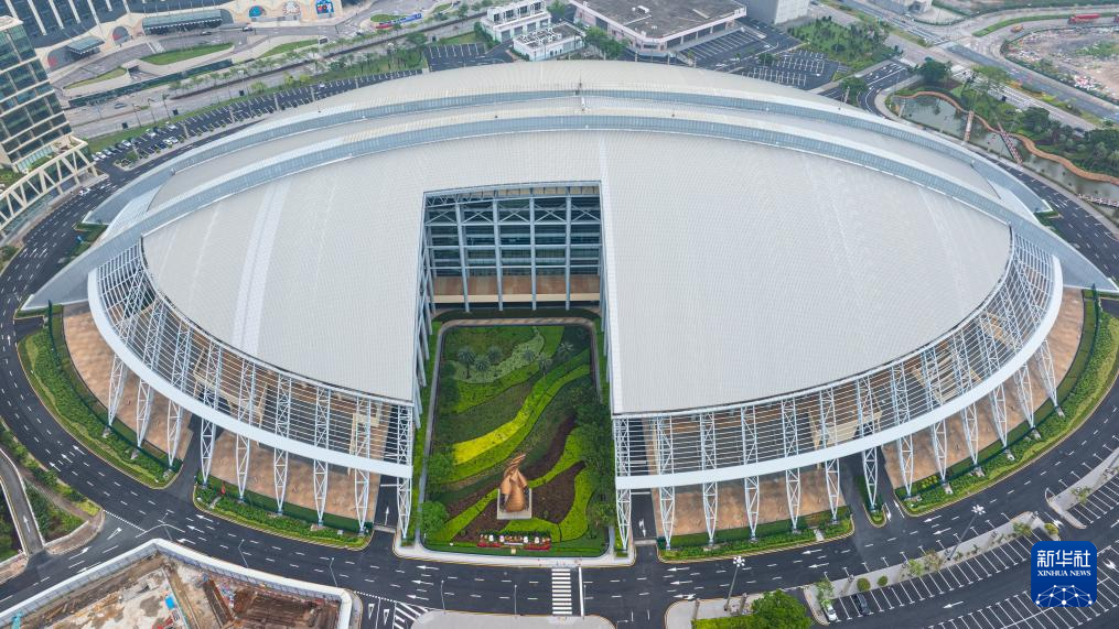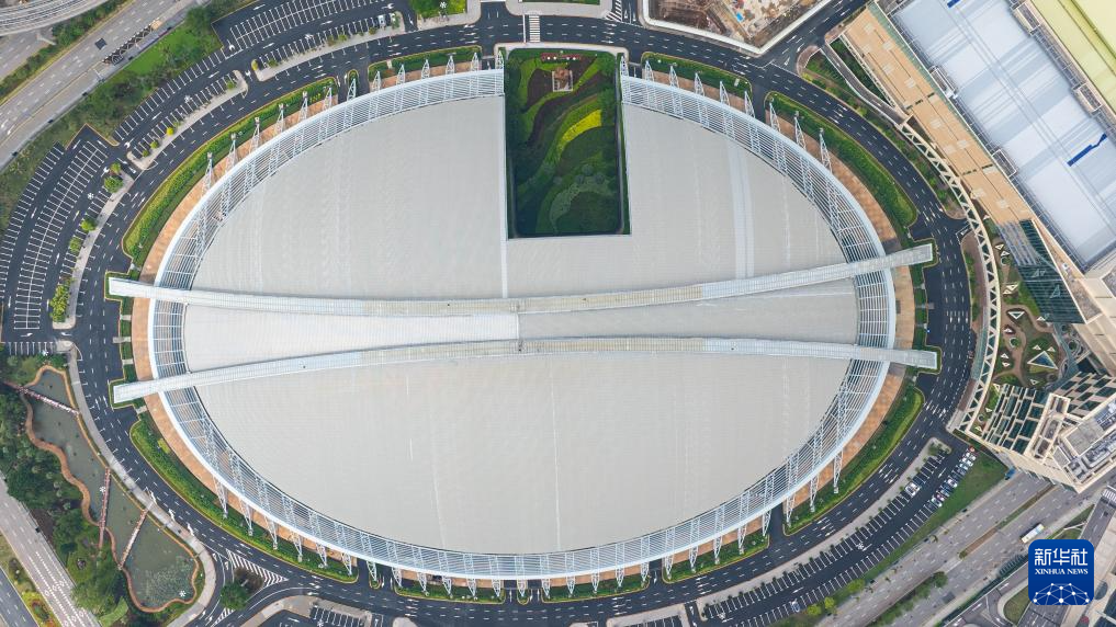 深圳湾体育中心(10月19日摄,无人机照片)。全运会篮球女子22岁以下组、马拉松比赛在这里举行。其中,全运会马拉松比赛从深圳湾体育中心周边道路起跑,以深圳湾大桥为纽带,横跨深圳、香港两地,最后回到深圳湾体育中心。