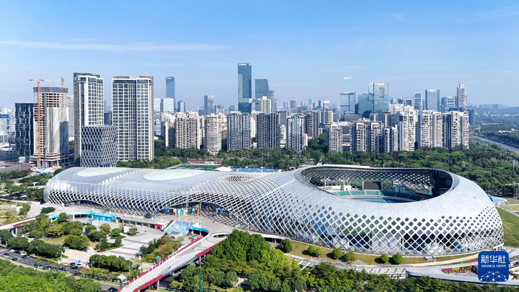 深圳市体育中心(11月2日摄)。全运会羽毛球、射箭、足球男子20岁以下组部分比赛及足球男子18岁以下组部分比赛在这里举行。