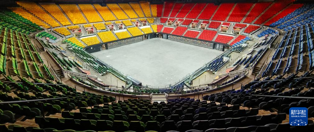 广东惠州体育馆内景(10月10日摄)。全运会跆拳道比赛及群众比赛轮滑项目在这里举行。
