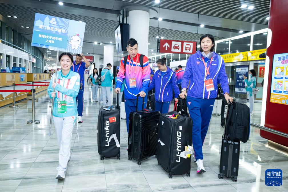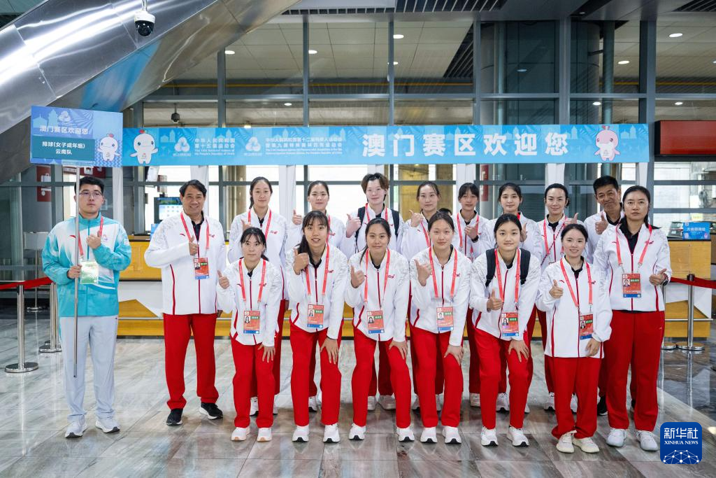 当日,第十五届全国运动会女子排球成年组参赛队伍陆续抵达澳门。女排成年组比赛将于7日开赛。