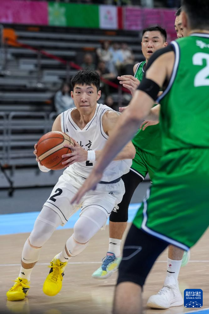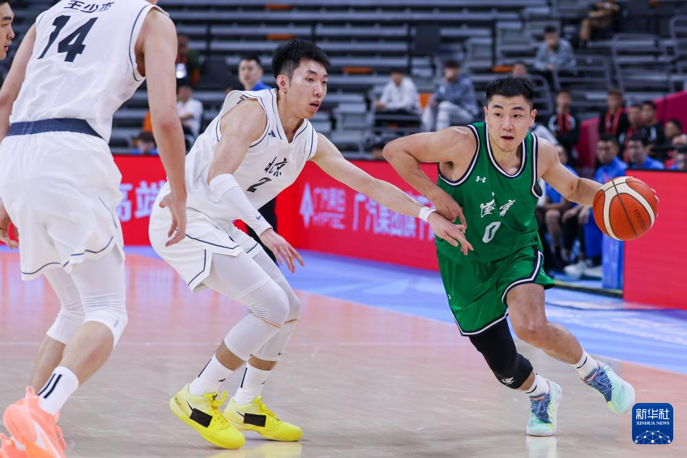 11月6日,北京队球员廖三宁(左)在比赛中突破。