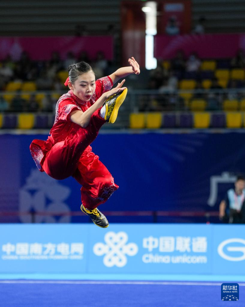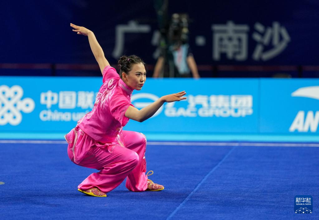 11月8日,河南队选手梁晃臣在女子长拳比赛中。