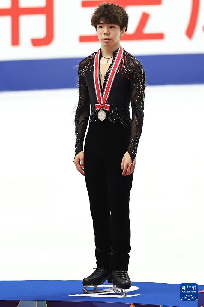 11月8日,日本选手佐藤骏在男子单人滑颁奖仪式上。他获得男子单人滑亚军。