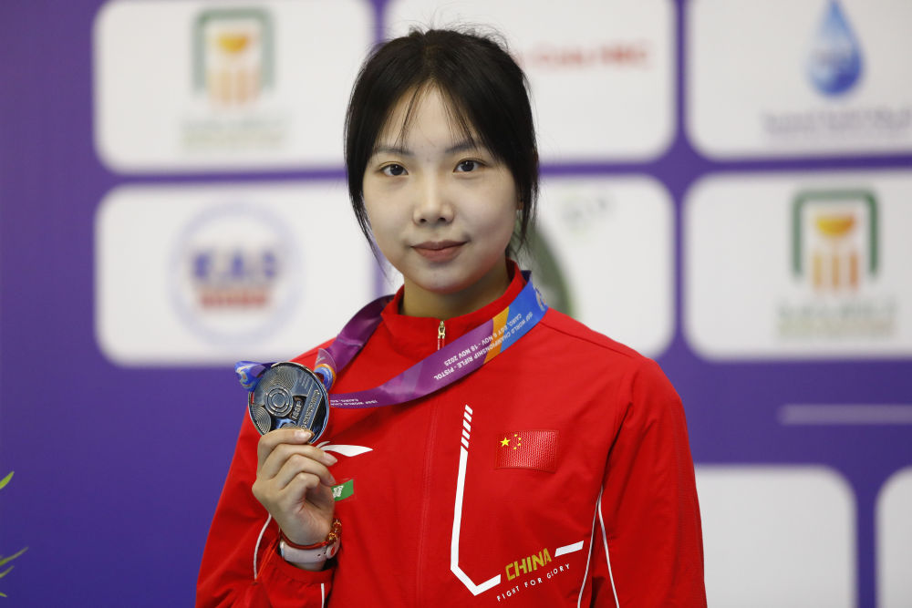 11月8日,获得亚军的中国选手王子菲在颁奖仪式上。新华社发(艾哈迈德·戈马摄)