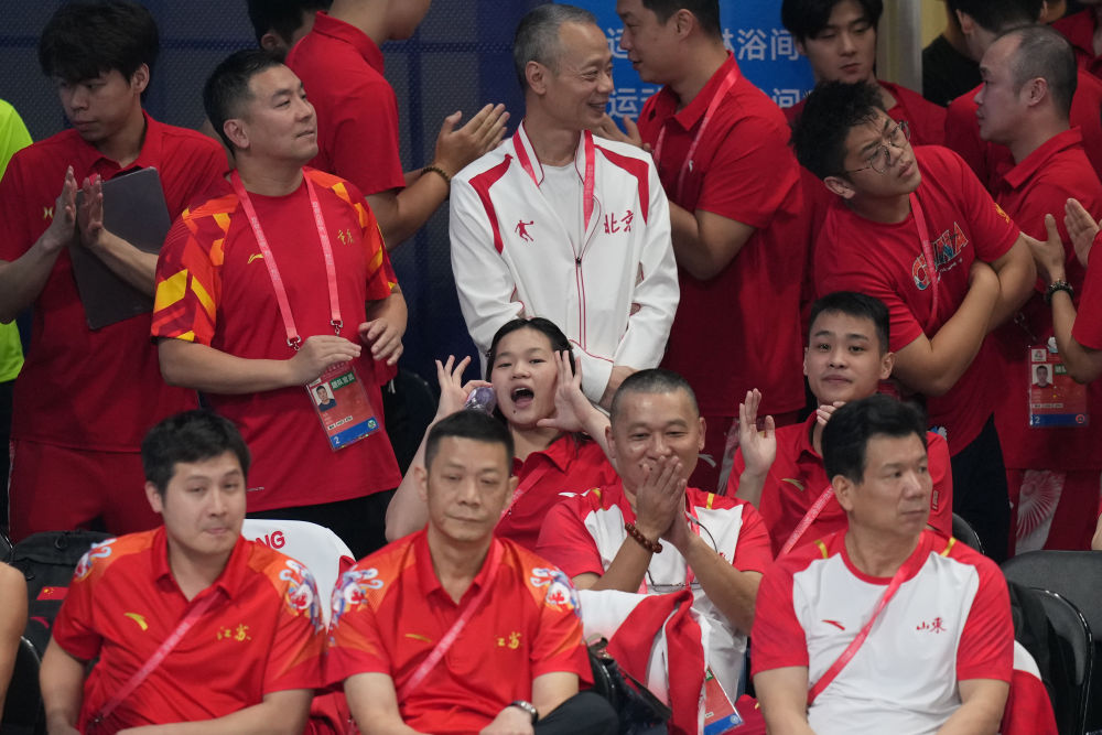 全运会赛场,广东跳水队员时常温馨互动。全红婵帮谢思埸带娃、在看台为队友加油,陈艺文会在没有比赛任务时用相机帮队友拍照,参赛选手时常亲切提到“谢哥”(谢思埸)“森哥”(陈艾森)等老将对自己的帮助和鼓励……