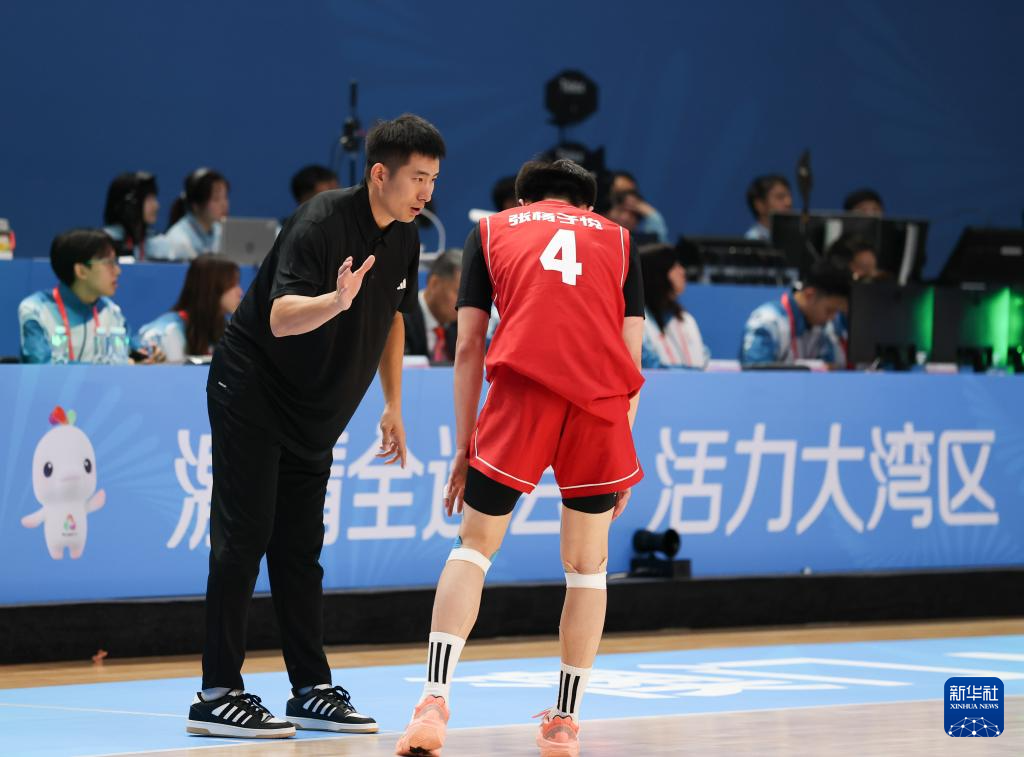 11月10日,北京队主教练张涛(左)在场边指导张杨子悦。