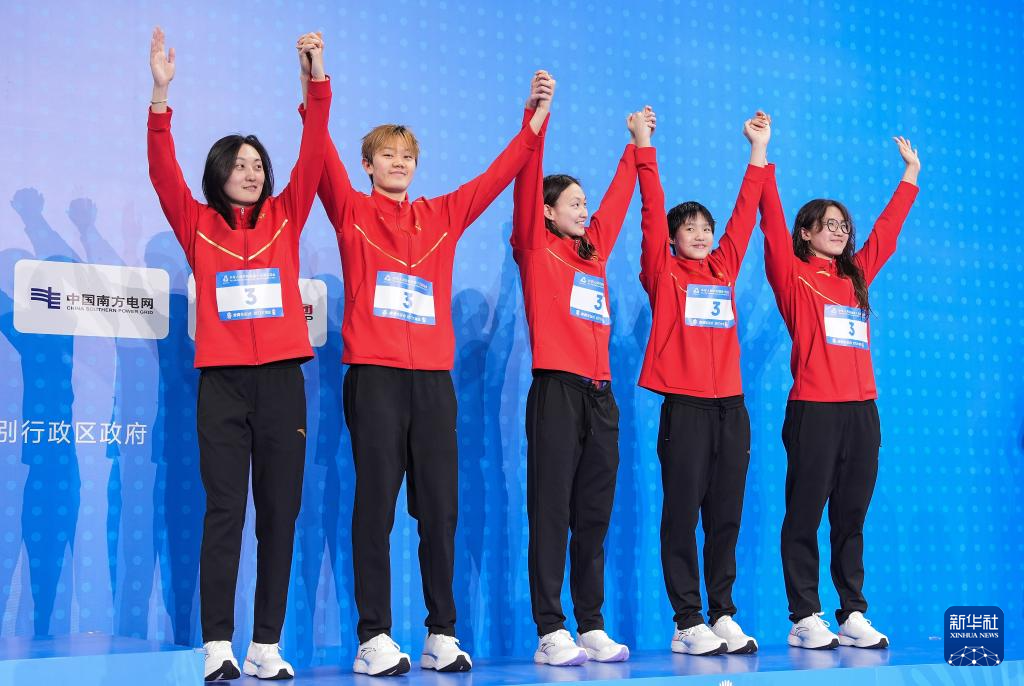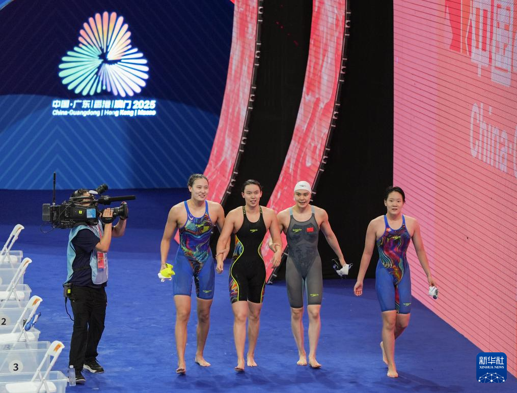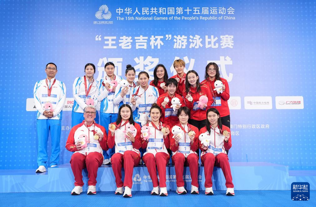 当日,第十五届全国运动会游泳项目女子4X100米自由泳接力决赛在深圳举行。