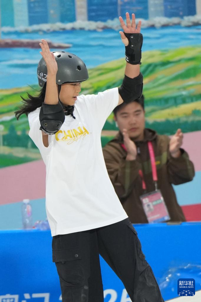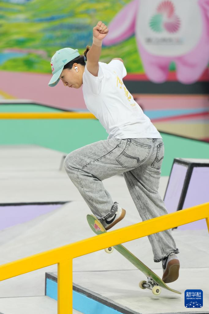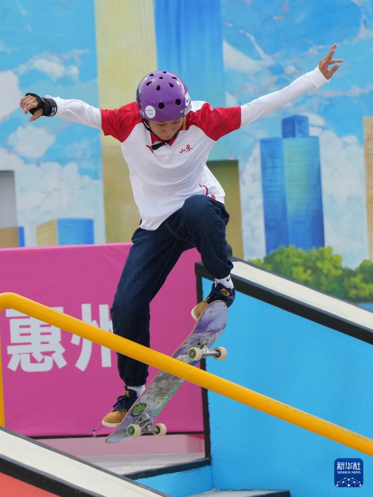 当日,第十五届全国运动会滑板项目女子街式赛决赛在广东惠州举行。