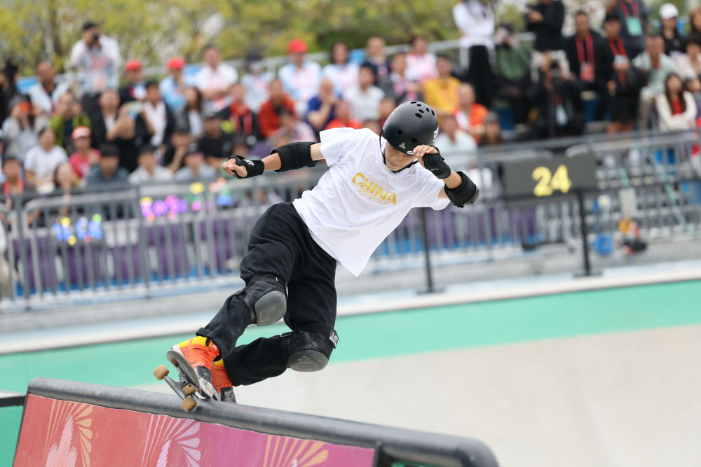 女子街式项目中,15岁的巴黎奥运会第四名、山东队选手崔宸曦夺冠。她表示自己的技术难度和心态调控能力比奥运会时都有提升:“滑板10到15岁可能是个上升期,所以还是想要在这个阶段多练成一些想做的动作。”
