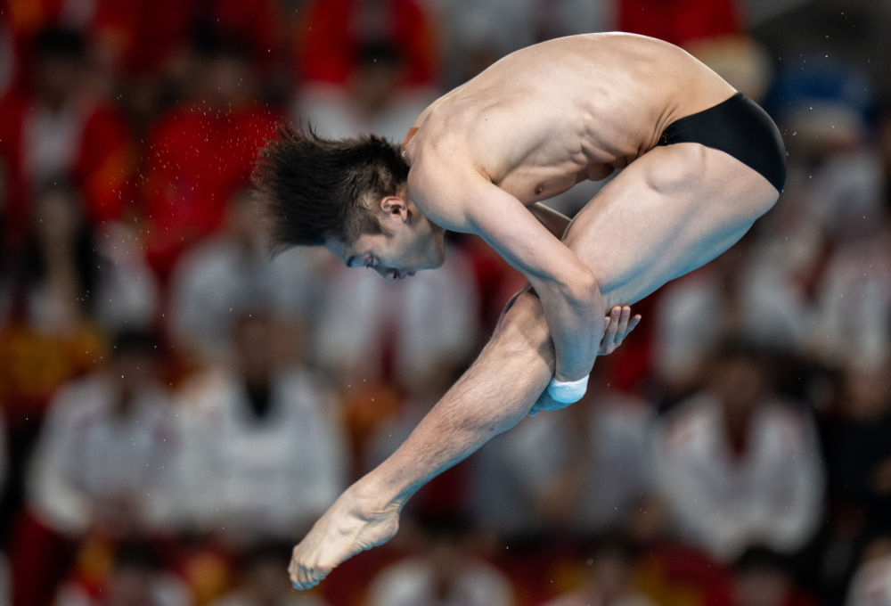 男子10米台项目竞争激烈。预赛、半决赛、决赛,一天三场、连续完成18跳的练俊杰,在最后一跳突破百分大关,问鼎冠军。奥运“四朝元老”曹缘为北京队摘得银牌,陕西队的14岁小将赵仁杰收获铜牌。