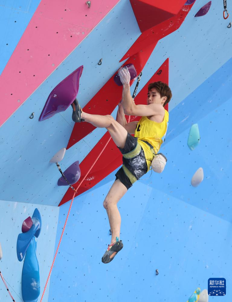 当日,第十五届全国运动会攀岩项目男子难度预赛在广州举行。
